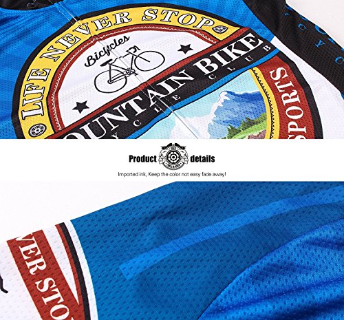 Thriller Rider Sports Mens Cheers for Being Blue Mountain Bike Short Sleeve Cycling Jersey Bike Tshirt 4X-Large