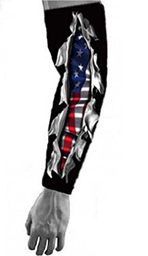 Nexxgen Sports Apparel Compression Arm Sleeve (Single)- 40 Styles and Colors- Men, Women, Youth - Basketball Shooter, Football, Baseball, Lymphedema, Tattoo (Youth Medium, USA Flag/Red/Skull)