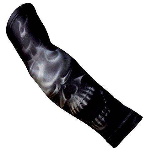 Nexxgen Sports Apparel Compression Arm Sleeve (Single)- 40 Styles and Colors- Men, Women, Youth - Basketball Shooter, Football, Baseball, Cycling, Lymphedema, Tattoo (Youth Medium, Gray Skull)