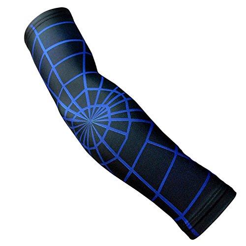 Nexxgen Sports Apparel Compression Arm Sleeve (Single)- 40 Styles and Colors- Men, Women, Youth - Basketball Shooter, Football, Baseball, Lymphedema, Tattoo (X-Large, Blue Spiderweb)