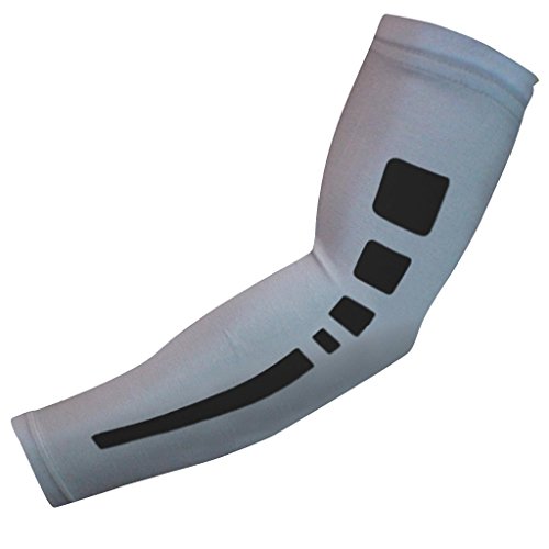 Nexxgen Sports Apparel Compression Arm Sleeve (Single)- 40 Styles and Colors- Men, Women, Youth - Basketball Shooter, Football, Baseball, Cycling (Youth Medium, Black/Gray/White)