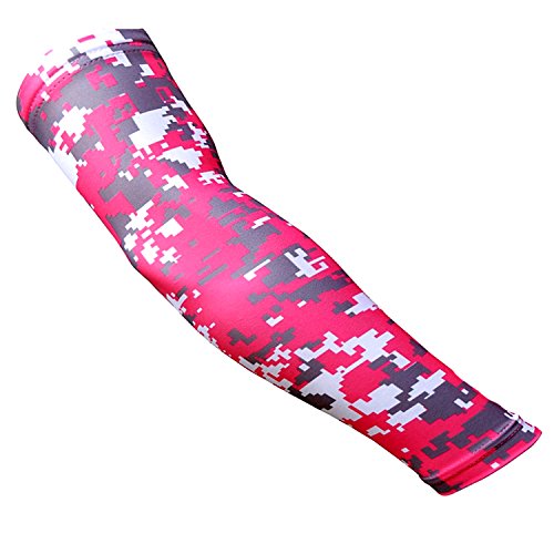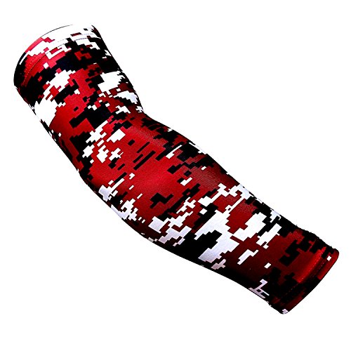 Nexxgen Sports Apparel Moisture Wicking Compression Arm Sleeve (Single) - Men, Women, Adult & Youth - 40 Colors - Digital Camo & Elite (Large, Red/Black/White)