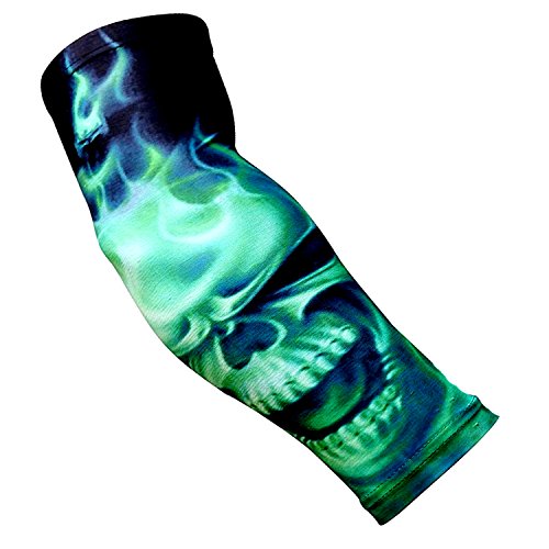 Nexxgen Sports Apparel Compression Arm Sleeve (Single)- 40 Styles and Colors- Men, Women, Youth - Basketball Shooter, Football, Baseball, Lymphedema, Tattoo (Youth Medium, Green Skull)