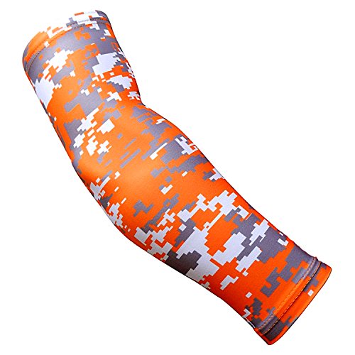 Nexxgen Sports Apparel Moisture Wicking Compression Arm Sleeve (Single) - Men, Women, Adult & Youth - 40 Colors - Digital Camo & Elite (Large, Orange/Black/White)