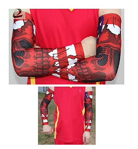 Nexxgen Sports Apparel Moisture Wicking Compression Arm Sleeve (Single) - Men, Women, Adult & Youth - 40 Colors – Digital Camo & Elite (X-Large, USA Flag/Red/Skull)