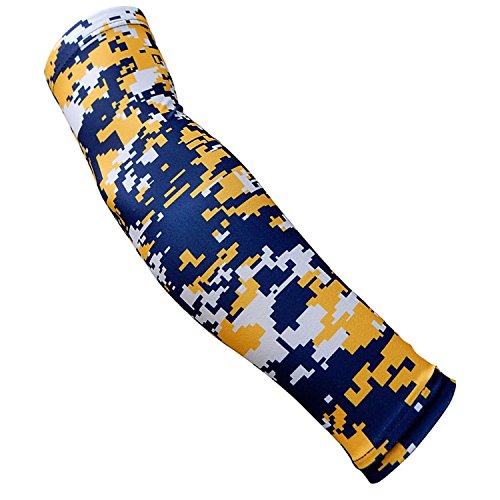 Nexxgen Sports Apparel Moisture Wicking Compression Arm Sleeve (Single) - Men, Women, Adult & Youth - 40 Colors - Digital Camo & Elite (Large, Navy Blue/Yellow/White)