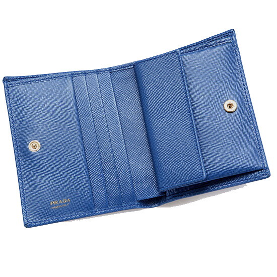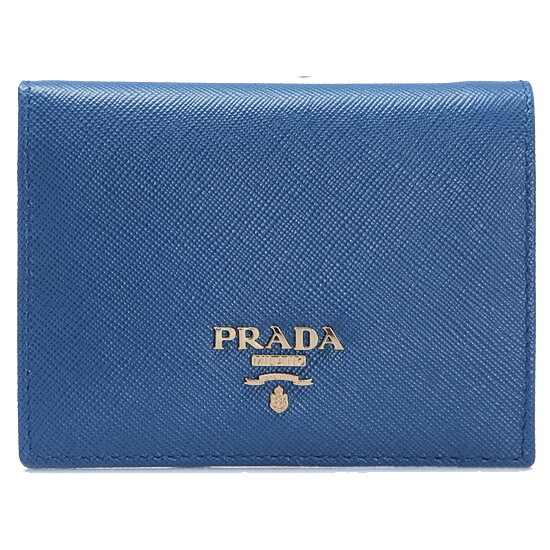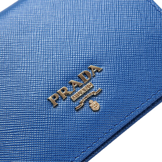고급스러운 블루 컬러에 정면에 골드 메탈 프라다 로고 장식이 포인트가 되어