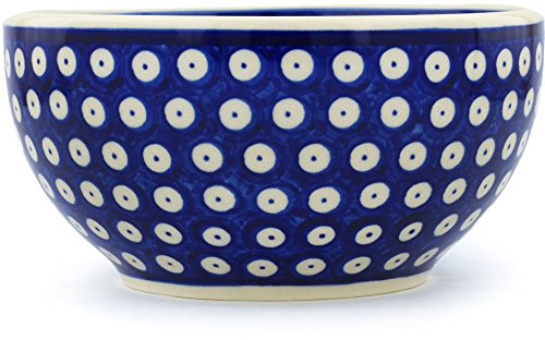 Polish Pottery Bowl 7-inch Blue Eyed Peacock