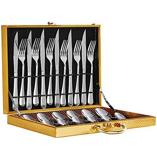 Silverware set, adier-life Stainless Steel Flatware Set, 24-Piece Utensils Set as Housewarming Gift