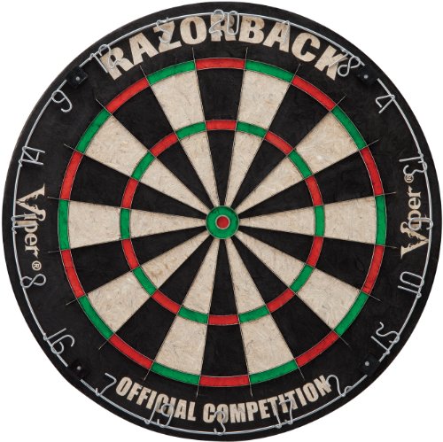 -. Feature : Constructed from self-healing sisal bristle fibers compressed together, providing unsurpassed durability / Staple-free spider utilizes razor thin galvanized wires which greatly increases the surface area, helping prevent bounce-outs / Viper Razorback is an official tournament size board, measuring 18" in diameter and 1.5" D / A movable number ring further extends the dartboard's life / Dartboard accommodates both steel tip and soft tip darts and includes mounting hardware