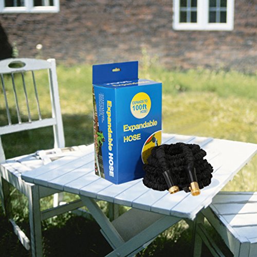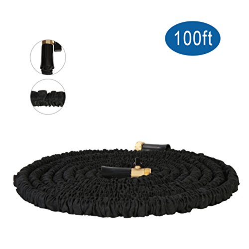 Hongmai 100ft Expandable Garden Hose - Flexible Water Hose with Triple Layer Latex Core& Improved Extra Strength Fabric Protection for All Watering Needs - Expanding Watering Hose, Black