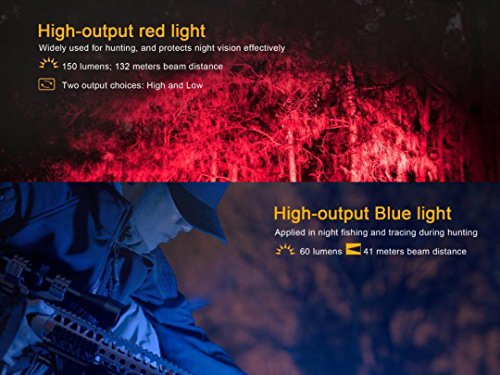 - RED & BLUE LEDs - High powered 150 lumen red and 60 lumen blue LEDS provide constant and strobe outputs ideal for hunting, map reading, blood tracking and other tactical scenarios.