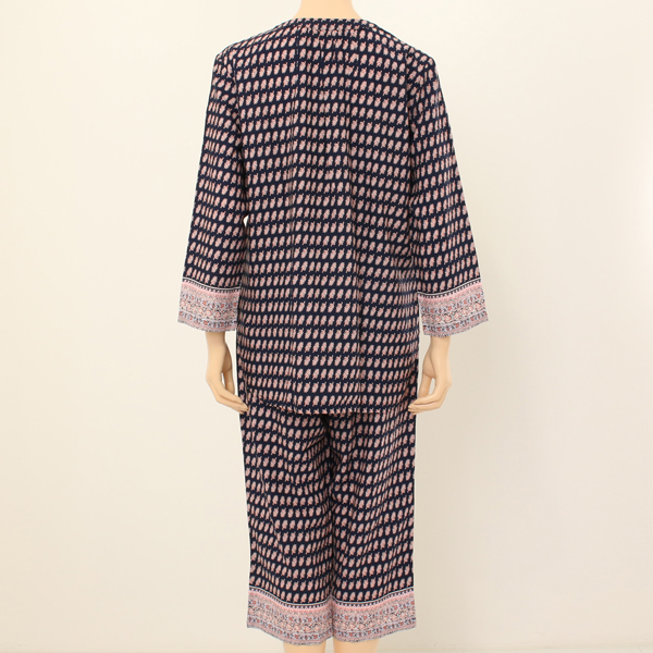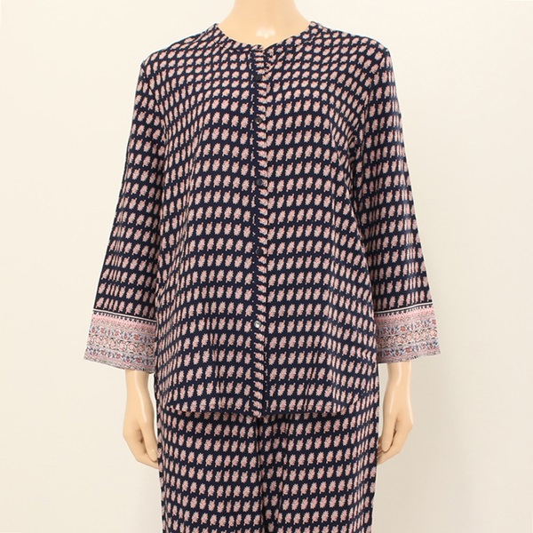 기하학 보더 프린트가 에스닉하면서 트렌디한 여성파자마 잠옷입니다.