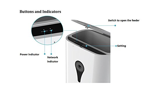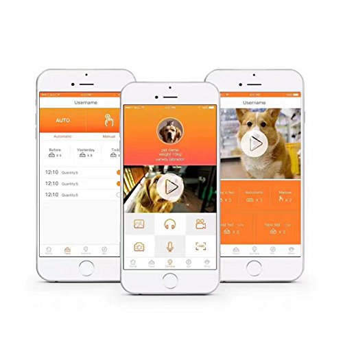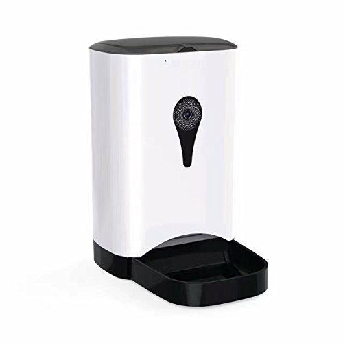 -. Feature : 4.3L capacity food barrels, support dry food of diameter 0.5-1.5cm / With 130° wide angle lens on the pet feeder, you can monitor your pet anywhere with your andriod or IOS smartphone. / High fidelity recording, two-way audio, voice fed reminder. / Download APP on mobile phone and connect the pet feeder with WIFI, enjoy all function controlled on your mobile phone: automatic feeding or manual feeding option; Distribution Alarms, Portion Control & Voice Recording. / Enjoy real time remote viewing pet food, photography and video sharing to mainstream social networks.