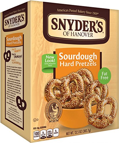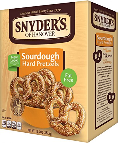 -. Binding : Grocery -. Brand : Snyder's of Hanover -. Feature : 12 Pack of 13.5 oz Boxes of Snyder's of Hanover Hard Sourdough pretzels / Slow-baked to seal in the flavor of real sourdough, our Hard Sourdough Pretzels have the genuine taste and hearty crunch from our family recipe formulated over a century ago. / Snyder's of Hanover pretzels give you that delicious crunch for the perfect snack! / "America's Favorite Pretzel" - made by Snyder's of Hanover / Open a box for an easy party appetizer with a side of French Onion dip! -. Label : Snyder's of Hanover -. Manufacturer : Snyder's of Hanover -. Model : 022752 -. NumberOfItems : 12 -. PackageQuantity : 12 -. ProductGroup : Grocery -. ProductTypeName : GROCERY -. Publisher : Snyder's of Hanover -. ReleaseDate : 2006-06-09 -. Studio : Snyder's of Hanover -. Title : Snyder's of Hanover Hard Sourdough Hard Pretzels, 13.5-Ounce Box (Pack of 12)