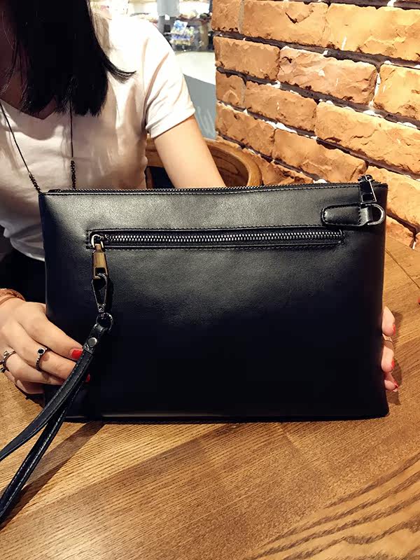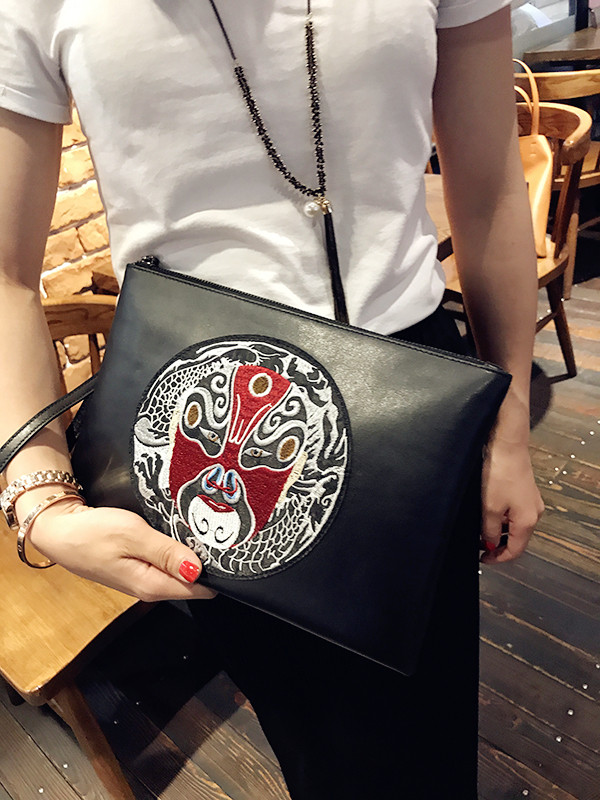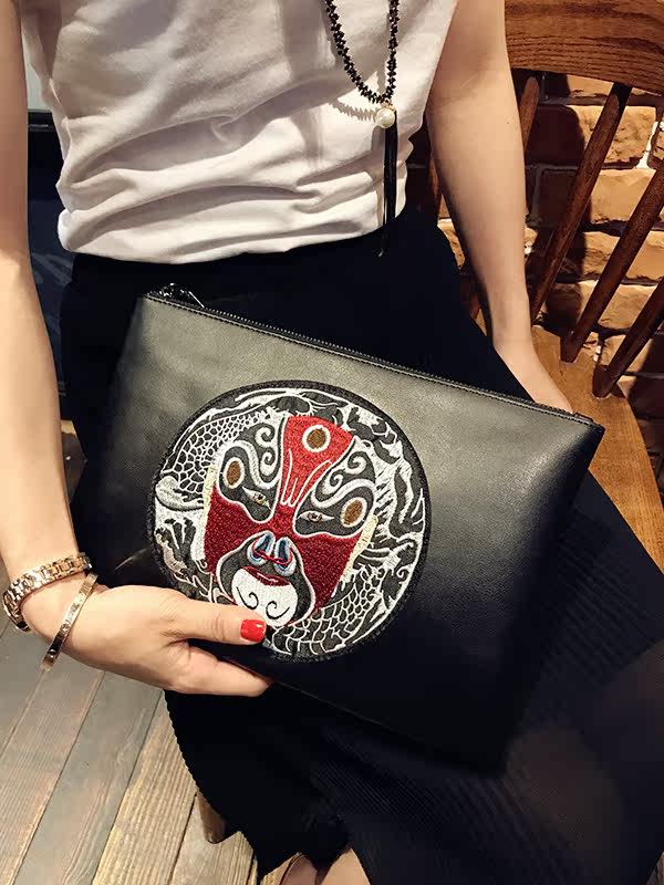 脸谱手拿包新款头层牛皮手包个性时尚信封包软皮百搭手抓包女