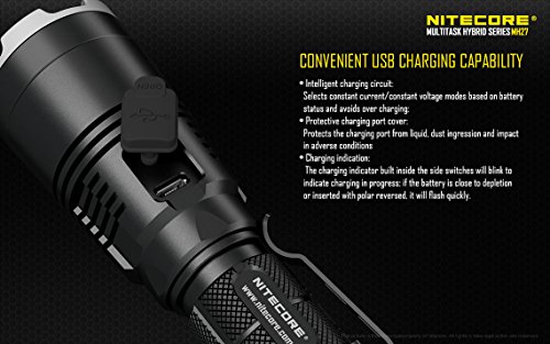 Nitecore MH27 1000 Lumens CREE LED rechargeable Flashlight/searchlight, 18650 rechargeable Li-ion battery, True Utility TU290B Keychain charger cord with 2 X EdisonBright CR123A lithium Batteries