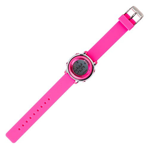 -. Feature : ✔ THE PERFECT FIRST WATCH Child's watch has an easy to read LCD display screen that tells the hour, minute, second and day of the week / ✔ SO MANY FUNCTIONS Kids' watch can display time in 12 or 24 hour format, includes a calendar and a 1/100 second chronograph with a split function / ✔ THE Watch Even Has an EL backlight of six colors to choose from that makes it easy to read at night. / ✔ BUILT-IN ALARM Hourly chime and alarm function helps kids track the hours / ✔ EASY TO READ AT NIGHT EL backlight illuminates the face for easy reading in the dark