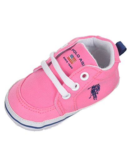 Outfit baby for comfort and style with these sneaker-style booties from U.S. Polo Assn.! U.S. Polo Assn. sneaker booties Soft sole with gripper dots Lace-up vamp Canvas upper Imported