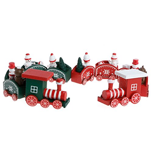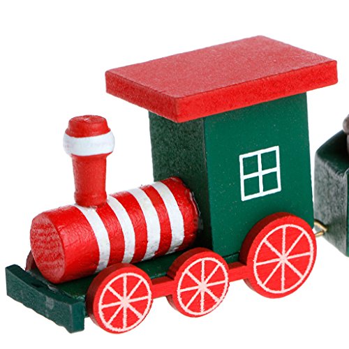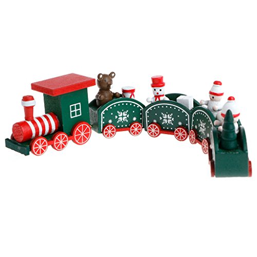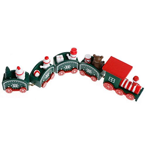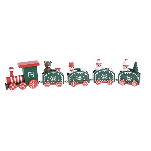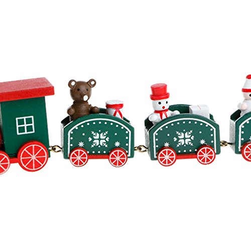 Allrise Christmas Wooden Train Set, Decoration Exquisite 5-Section Train Home Table Ornament Gift (Green)