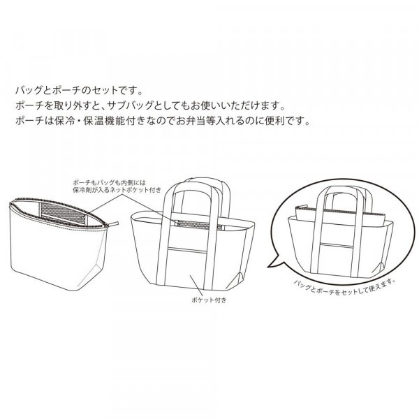 ランチバッグとポーチの2点セット。ポーチは保冷・保温機能付き。