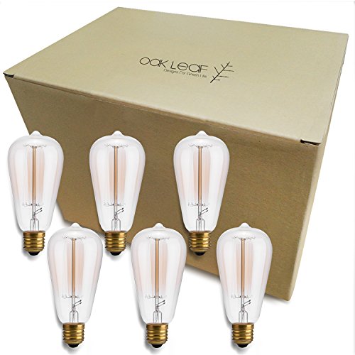 Oak Leaf Edison Bulbs, 40W Incandescent Filament Vintage Antique Style Light Bulb, 2400K Warm White(Amber Glow),Medium Screw Base E26,6 Pack