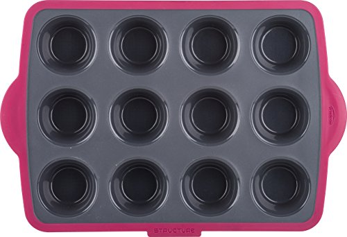 Trudeau 09912094 12 Count Structure Muffin Pans in Silicone, Grey/Pink