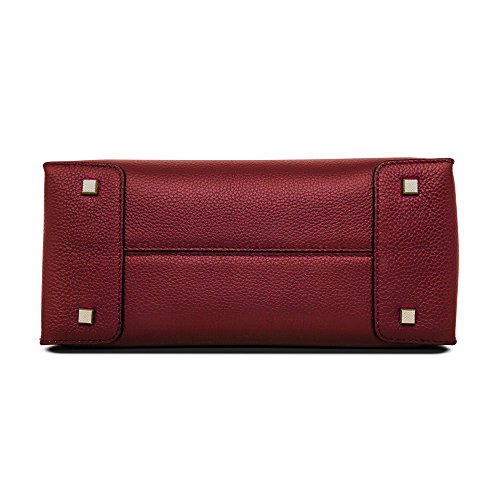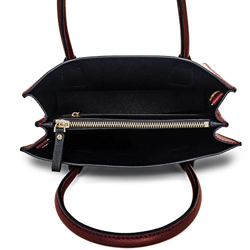 - [Handbags Design]The Full Grain Cowhide Leather Handbag has two compartments with 1 zip pocket and 1 secret compartmental pocket inside. Rivets studded at the bottom prevent abrasion.With the removable and adjustable leather shoulder strap, one can utilize the handbag as a shoulder bag as well.All these make this Cowhide Genuine Leather handbag generous and elegant.