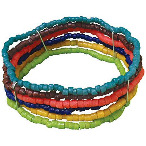 -. Feature : Fair Trade, handmade in Ghana. / Beads are on elastic bands so fits most wrists. / 6 strands of multi-colored recycled glass beads / Approx. 7.5" / Beautiful, sustainable look fashion accessory.