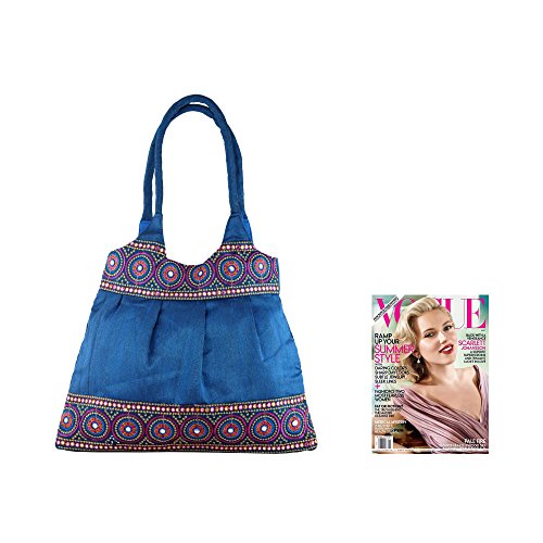 NOVICA Handmade Embroidered Shoulder Bag with Zipper, Blue and Rose Mandalas'