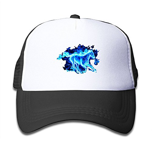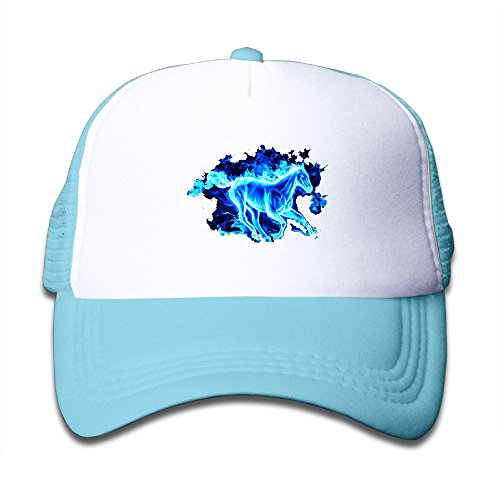 (NO4LRM)/Accessories/Hats/DIRECT FROM USA/Kid's Boys Girls Blue Fire Running Horse Youth Mesh Baseball Cap Summer Adjustable Trucker Hat