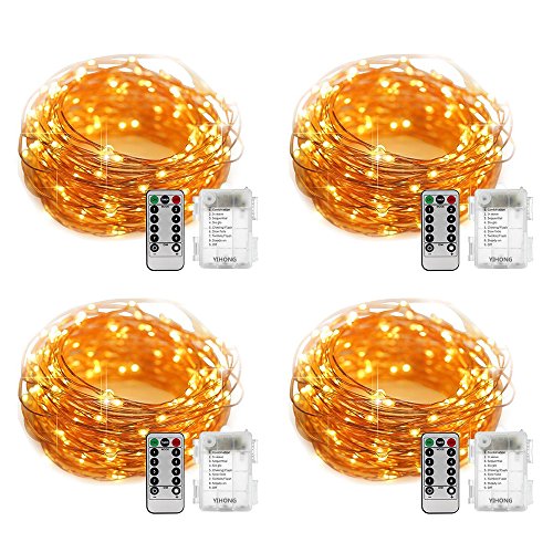 YIHONG 4 Set Fairy Lights Battery Operated Fairy String Lights Waterproof 8 Modes 50 LED 16.4FT String Lights with Remote Control for Wedding Halloween Thanks Giving Christmas Decoration(Warm White)