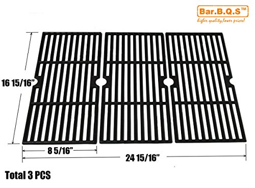 Bar.b.q.s CI66123 Cast Iron Cooking Grid Set Replacement for Select Gas Grill Models by Kenmore, Charbroil, Thermos, Set of 3