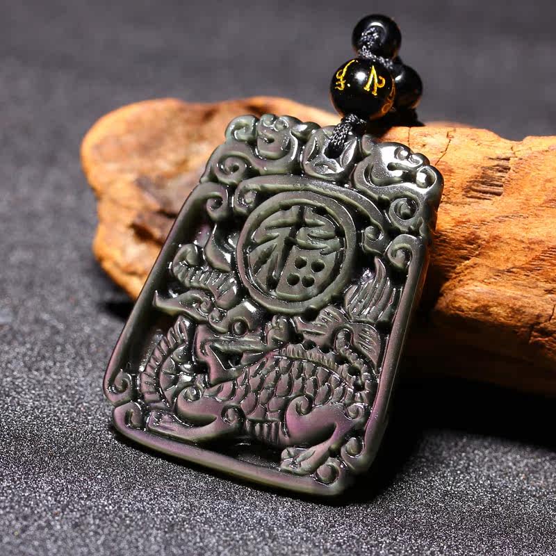 开光彩虹眼黑曜石麒麟吊坠 福麟赐瑞赐瑞祥麟吉祥物吊坠男女