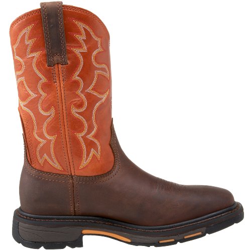 Studio : Ariat Work Publisher : Ariat Work Binding : Apparel Product Description These are the mens Workhog Wide Square Toe made from premium full-grain leather upper and a Goodyear storm welt construction. They have a six row stitch pattern and a mesh lining. They also have a stability chassis and a self-cleaning, non-tracking outsole tread design. This boot is also equipped with a shock absorbtion EVA midsole, oil and slip resistant Duratred outsole and toe protection. Ariat is celebrated for their high-caliber workboots and the Workhog style shows us why. The solid design features a full-grain leather upper and Goodyear welting for superior quality, while the outsole is self-cleaning and non-tracking. The stability chassis encourages an anatomically correct step and mesh lining is breathable for comfort on long days. 0