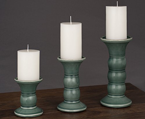 True Grit Fine Ceramic Round Base Natural Wash Finish Pillar Decorative Candlestick Holder 8" Height x 4" Width