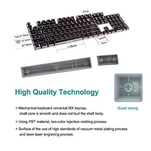 E-Element 104 PBT Double Shot Injection Backlit Black Gold Metal Color Keycaps for all Mechanical Switch Keyboards with Key Puller