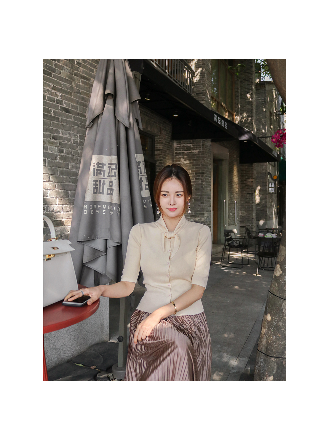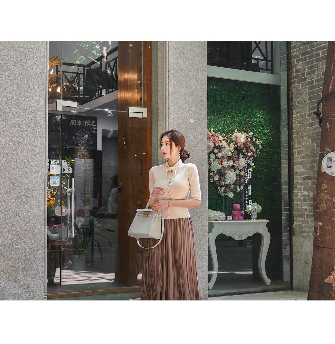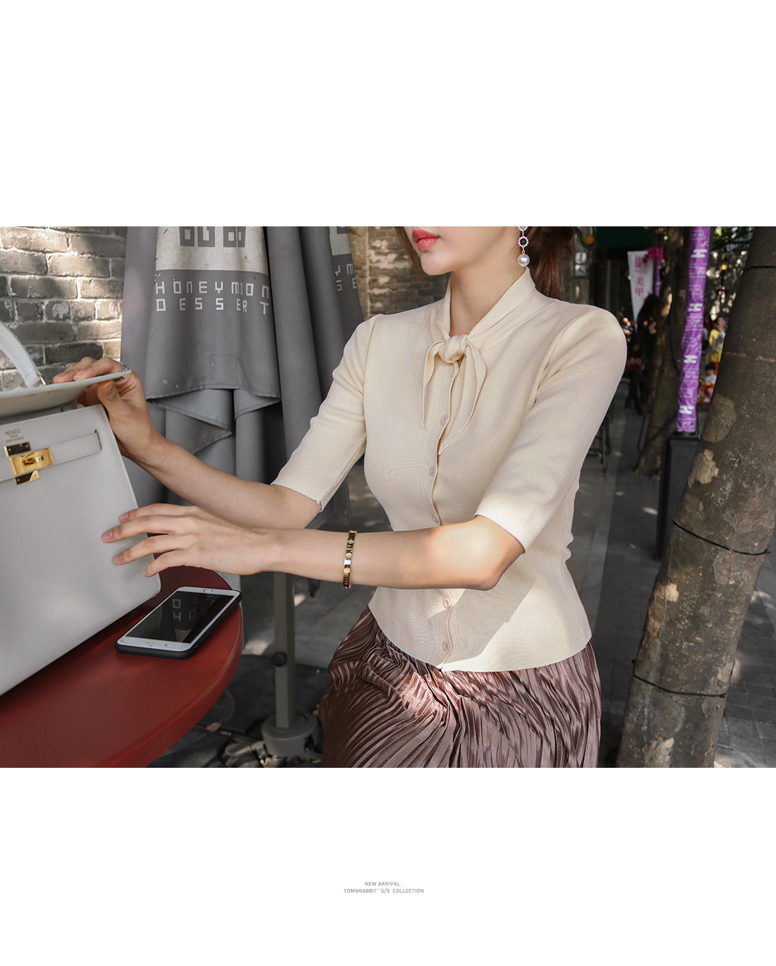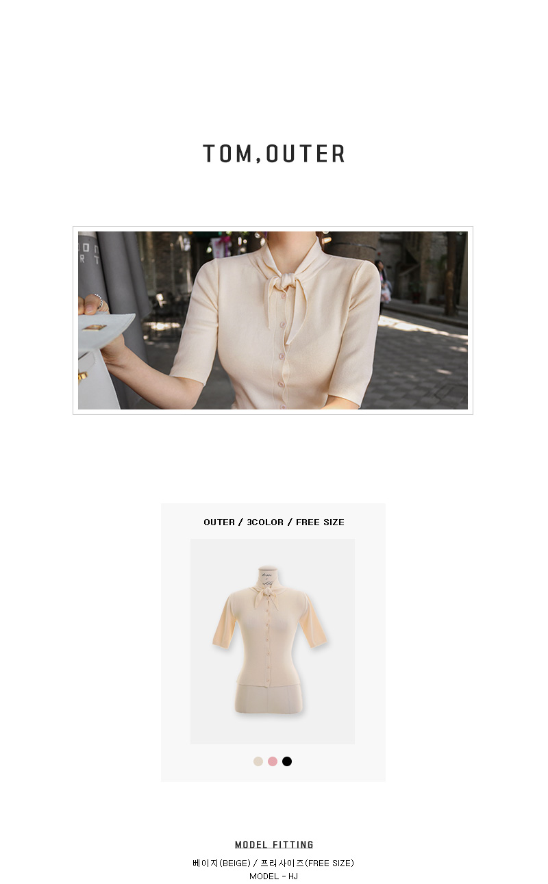 포인트 있는 리본 카라가 매력적인 칠부 가디건티 소개할게요.