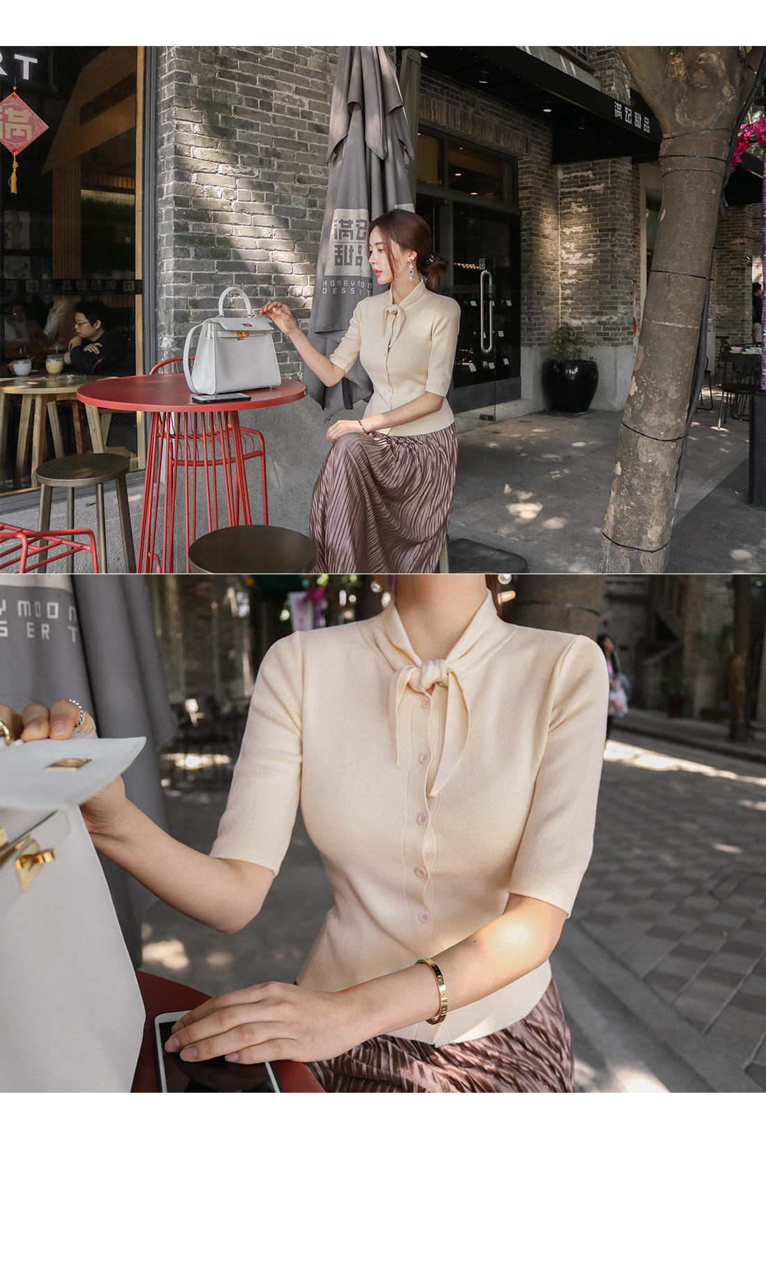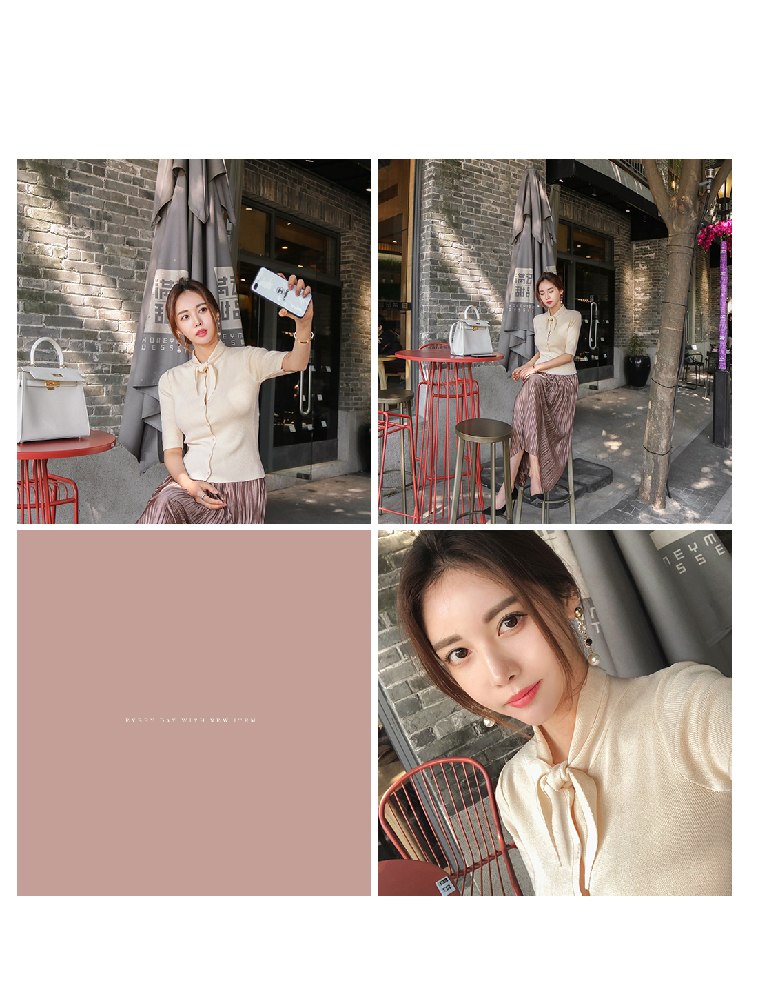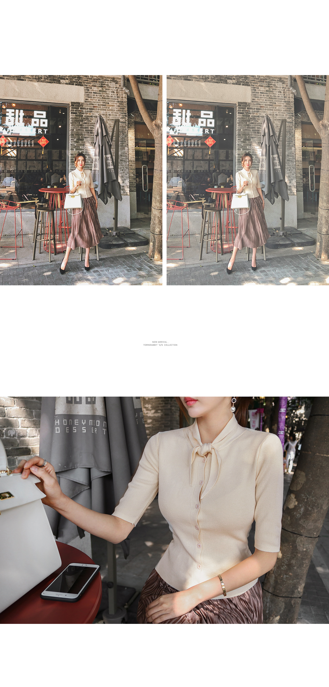 포인트 있는 리본 카라가 매력적인 칠부 가디건티 소개할게요.