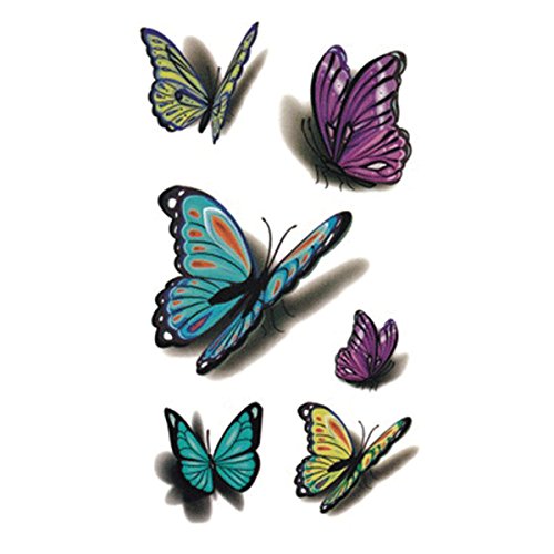 WYUEN 5 Sheets Waterproof Butterfly Temporary Tattoo Dragonfly Fake Tattoo Sticker For Women Men Hand Body Art 10.5X6cm FA-078