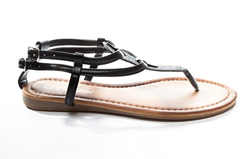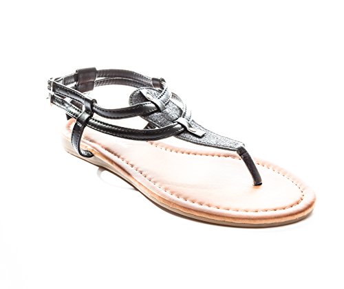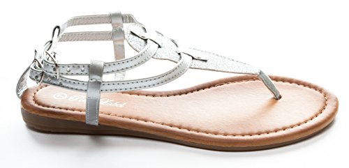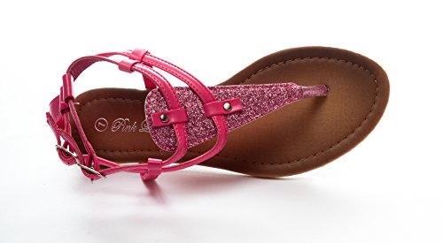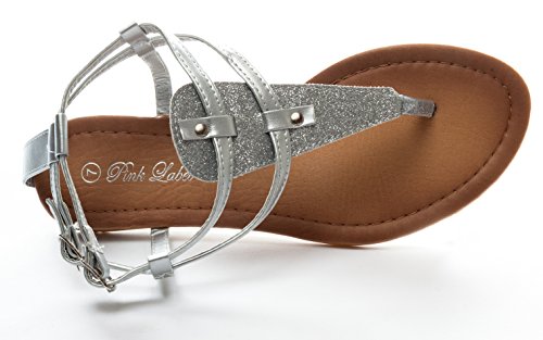 Pink Label Women's Strappy Gladiator Glitter Flat Sandal