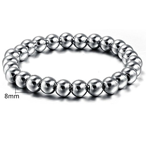 -. Title : ステンレス 数珠 8mm玉使用 ブレスレット シルバー メンズ レディース シンプル 艶アリタイプ 高級感アリ フリーサイズ bj2