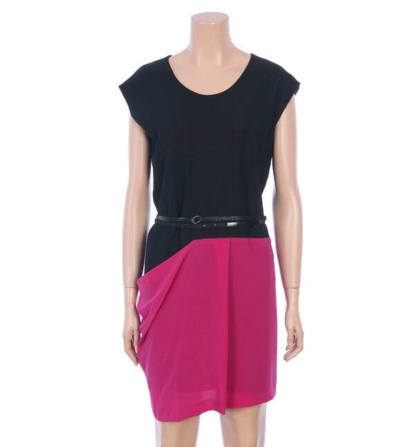 SISLEY, 투톤 배색으로 언발런스한 주름 디테일이 여성스러운 느낌을 더해주는 원피스입니다