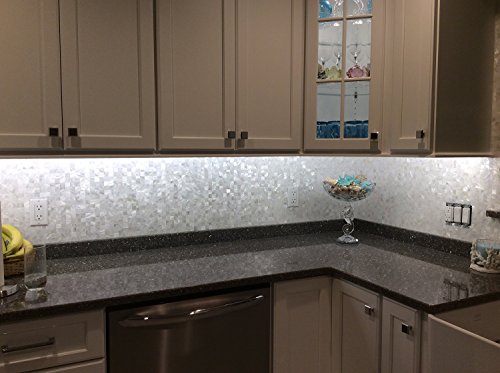 Made of genuine natural mother of pearls, 100% eco-friendly material, fire proof, no radiation, no pollution, no color fading. Luxury tile with natural pearl luster. Beyond the eco-responsibility of reusing materials, it's indisputable that mother of pearl shell mosaic wall tile brings beauty and character that nothing else can. Handcrafted wall art of coconut shell salvaged from nature, each piece's imperfections make it unique...Peel and stick tile has foamy layer of sticker on back, the tiles can be easily installed directly over existing panels or smooth surface. Especially designed for kitchen backsplashes and bathroom backsplashes.
