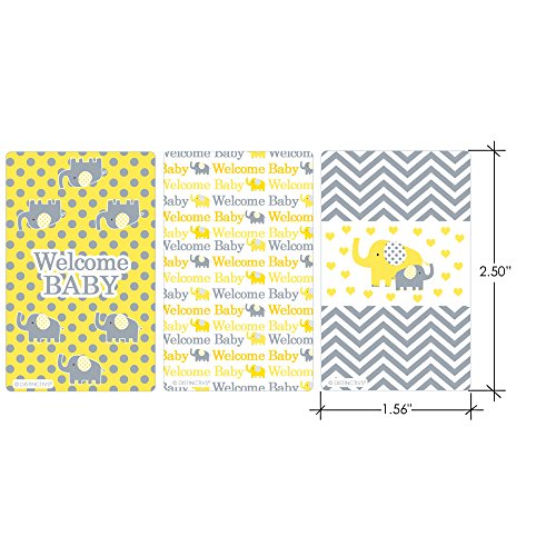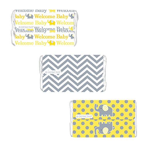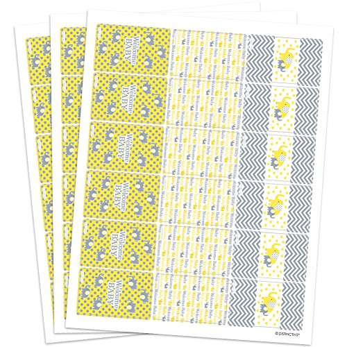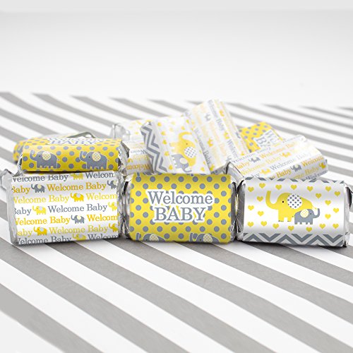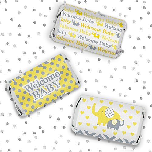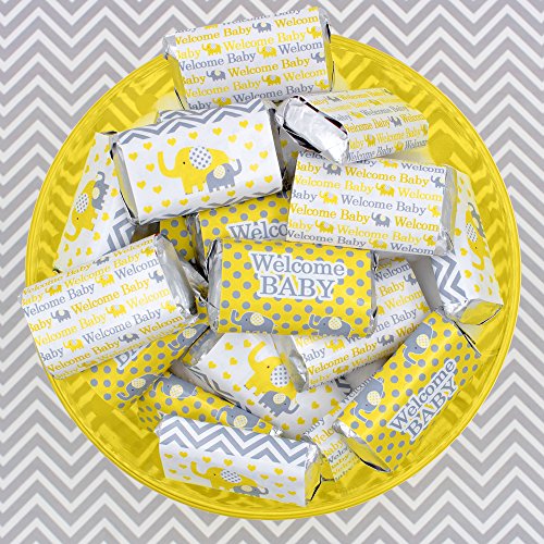 Yellow and Gray Elephant Baby Shower Miniatures Candy Bar Wrapper Stickers (Set of 54)