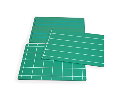 3 Small Green Chalk Boards with Handwriting, Lines and Squares. These are double sided chalk boards one side blank, the other with lines, with squares or with handwriting lines. Ideal for writing and sums.
