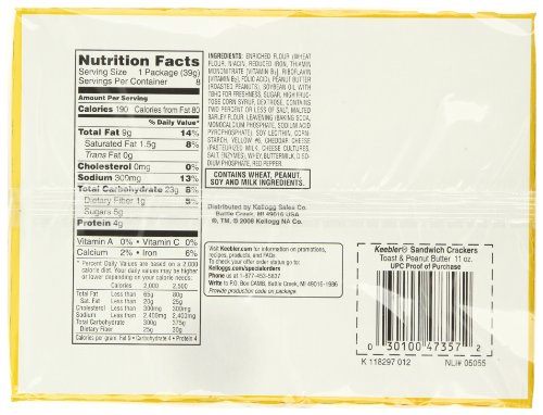 -. Feature : Case of 12, each containing eight 1.38-ounce packages of toast and peanut butter crackers (11.04 total ounces) / Made with real peanut butter for home-made flavor / Individually wrapped packets for on-the-go snacking / Satisfying, wholesome snack combines crispy crackers with creamy peanut butter filling / Made in the USA