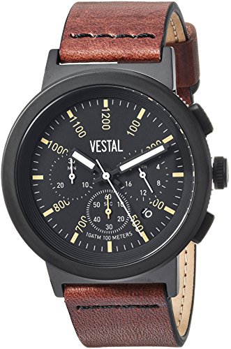 Vestal Quartz Stainless Steel and Leather Dress Watch, Color:Brown (Model: SLR44CL03.BRBK)