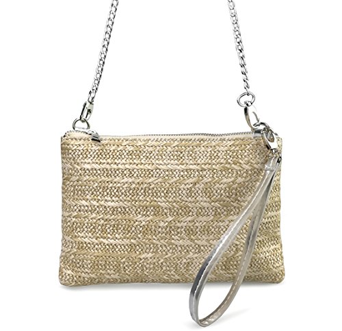 -. Title : Straw Zipper Small Cross body bag Wristlet Clutch Womens Purse