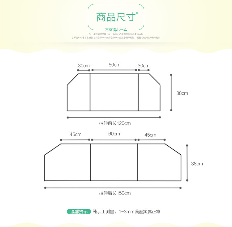 1. Total length 120cm, the maximum length of the stretch to both sides, at all stretch 150cm, can be stretched to the appropriate size with the need to use care to avoid vigorous stretching;